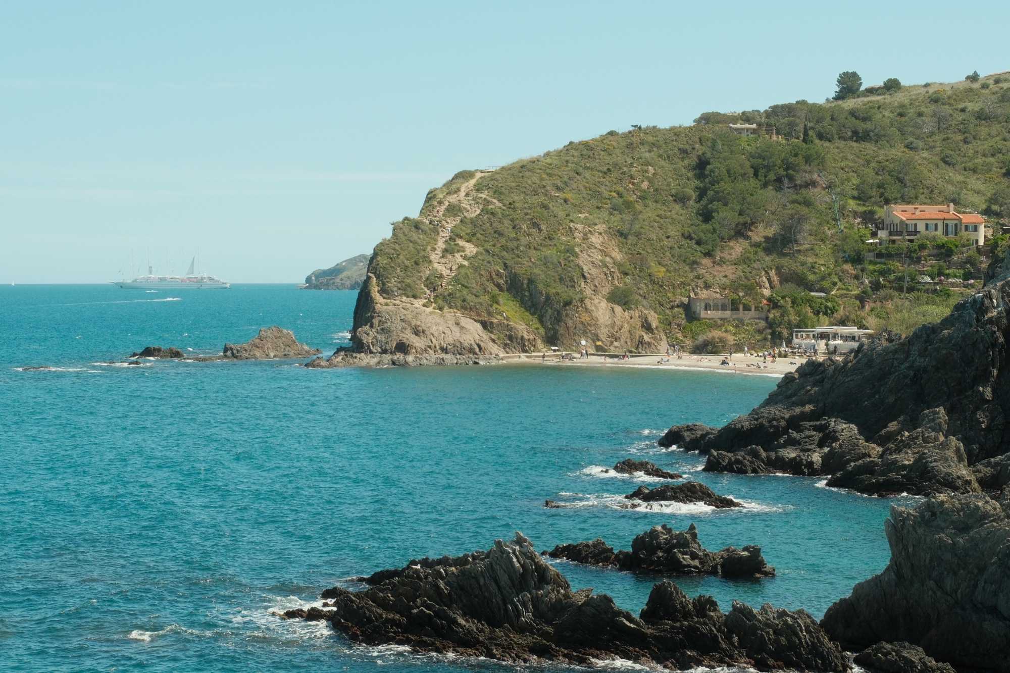 Zwischen Argelès-sur-Mer und Collioure gelegen, ist der Strand von l’Ouille ein kleines Paradies. Er ist vom Campingplatz aus leicht zu erreichen, man muss nur dem Weg hinunter zum Mittelmeer folgen. Dort erwarten Sie türkisfarbenes Wasser und endlose Klippen. Perfekt zum Schnorcheln und Tauchen, können Sie die Unterwasserwelt bewundern, bevor Sie den Tag mit einem Picknick oder einem Abendessen im Restaurant ausklingen lassen.