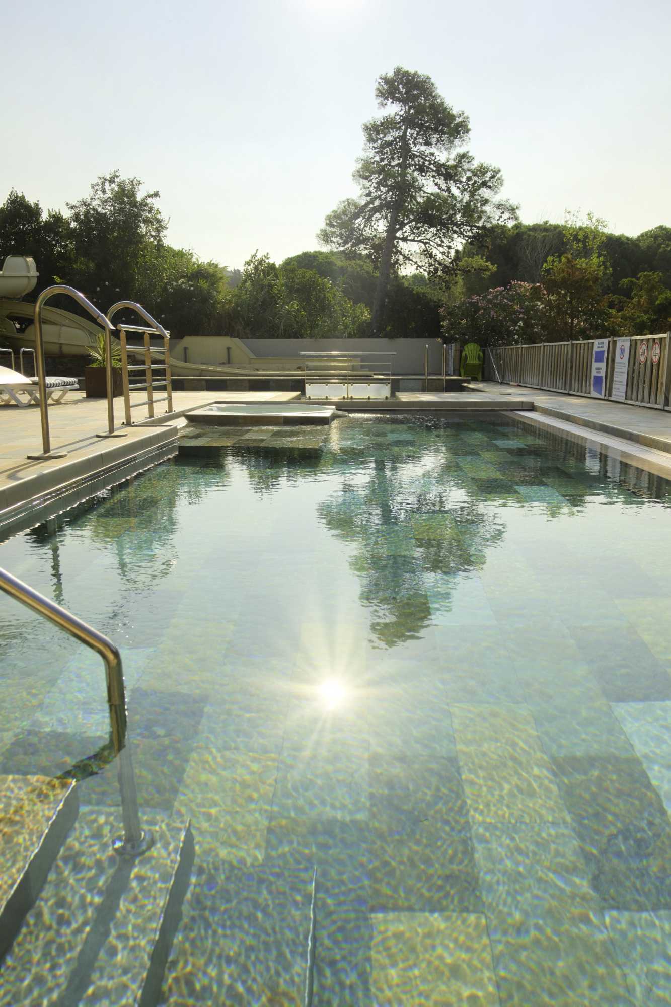 Es gibt 2 Pools mit Whirlpool und Spa, 2 Rutschen für das Vergnügen der jüngsten wie die ältesten. Unser Poolkomplex ist die perfekte Wahl für Spaß und Entspannung in einem grünen und schattigen Bereich.